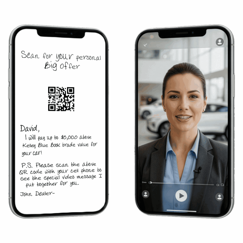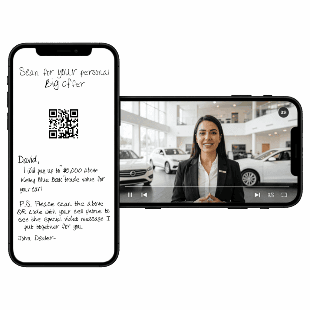 Imagine every recipient opening a video that addresses them by name, references their exact vehicle, and presents an offer built just for them. That's not the future—that's what we deliver today.