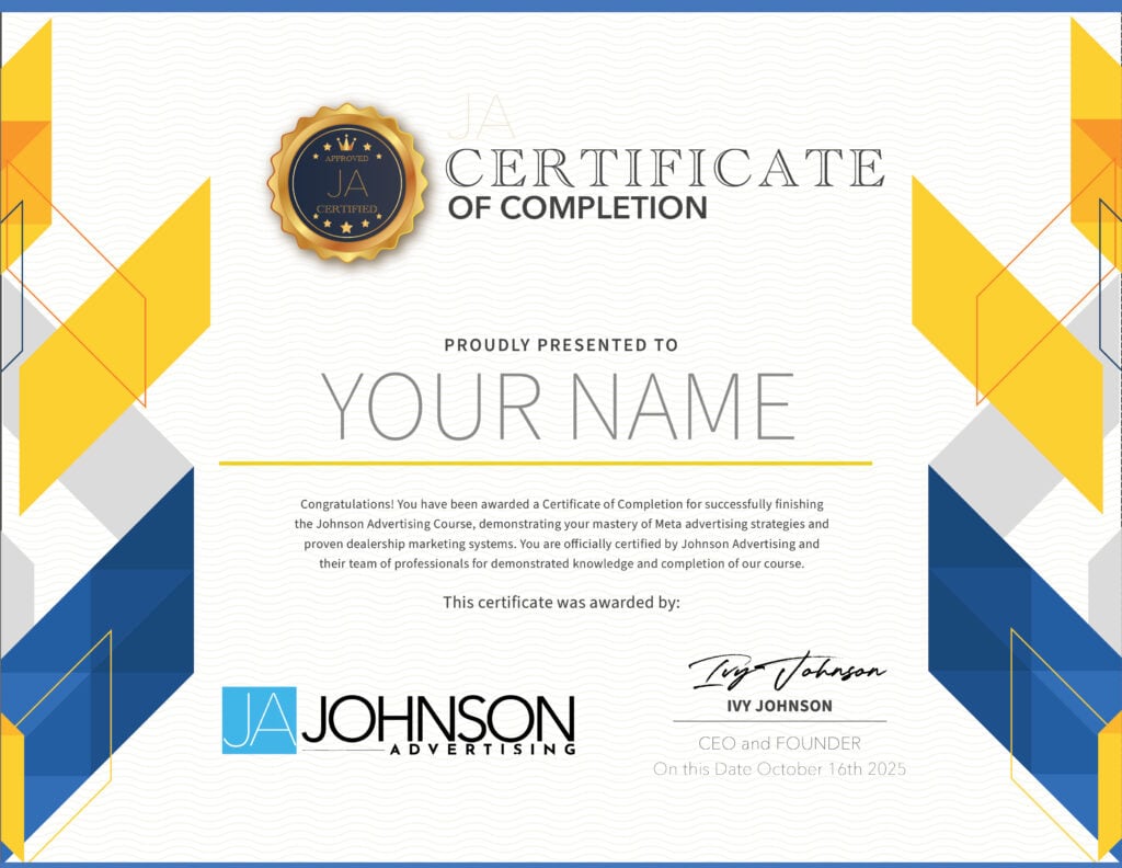 The Johnson Advertising Playbook is a proven Meta advertising system built exclusively for automotive dealers who want real traffic, real leads, and measurable showroom results.